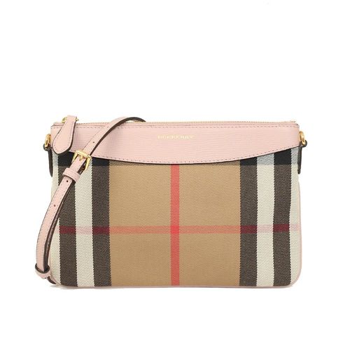 BURBERRY 英系格紋手拿斜背兩用包(藍紫)